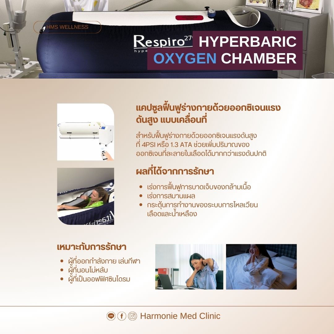 Hyperbaric Oxygen Chamber ติดต่อสอบถาม Harmonie med CLINIC 155/1 หมู่ 13 ต.รอบเวียง อ.เมือง จ.เชียงราย 57000 Mobile : 053-727399, 061-1956241 harmoniemedsolution@gmail.com FollowFollowFollow